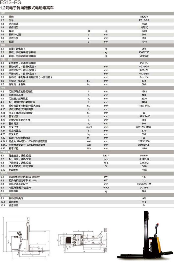 1.2噸電子轉(zhuǎn)向踏板式電動(dòng)堆高車 ES12-RS