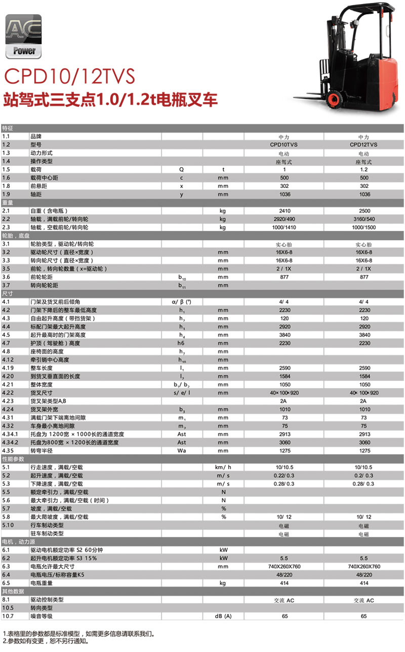 中力電動(dòng)叉車,1.0/1.2噸站駕式三支點(diǎn)電動(dòng)叉車CPD10TVS/CPD12TVS