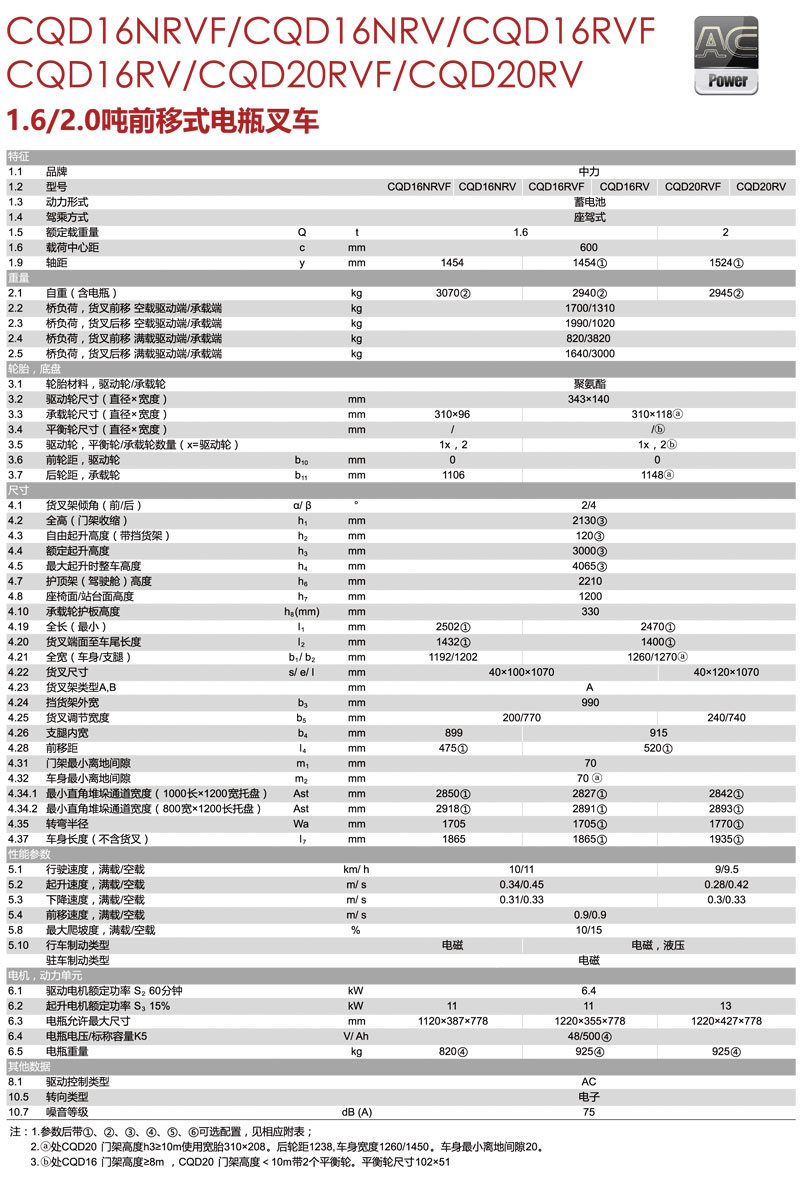 1.62.0噸前移式電動叉車CQD16RVF/CQD20RVF